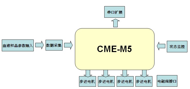 血液分析仪是医院临床检验应用非常广泛的仪器之一,用来检测红细胞、血红蛋白、白细胞、血小板等10来个项目。基于京微雅格CME-M1技术的血液分析仪解决方案通过FPGA驱动步进电机,可控制电机转速和方向,并且驱动电磁阀工作。同时通过MCU对ADC的采样数据进行处理并打包。