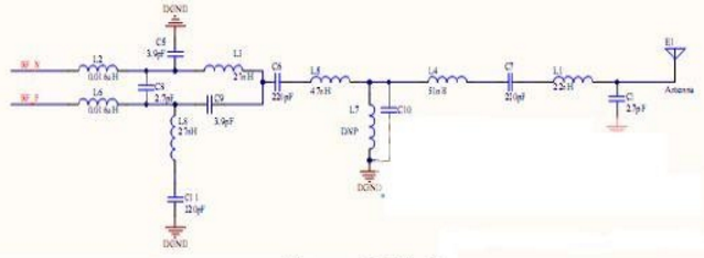 RF 模块的硬件电路在整个系统设计中尤为重要,如图 所示。图中的C5, C9, L3 以及L8形成一个平衡转换器,用以将CC430 上的差分端口RF_N/RF_P 平衡电路转换成单端不平衡的RF 信号,方便将振子流过电缆屏蔽层外的高频电流截断。图中的L5,C10 和L4 构成了带通滤波器;L2,L6 和C8 构成低通滤波器。在本设计中RF 的天线采用的是鞭状天线或者陶瓷天线。