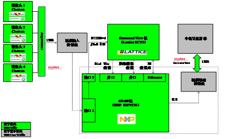 该方案采用了韩国算法公司MOVON的ADAS专利算法,360°全景环视部分采用了驰晶科技的全景算法和创新的CPU + Lattice FPGA架构。相较于其他ARM SOC平台解决方案,ARM + FPGA架构在实时视频处理、系统功耗降低、3D无缝融合、车辆的自适应能力上有很大的优势。